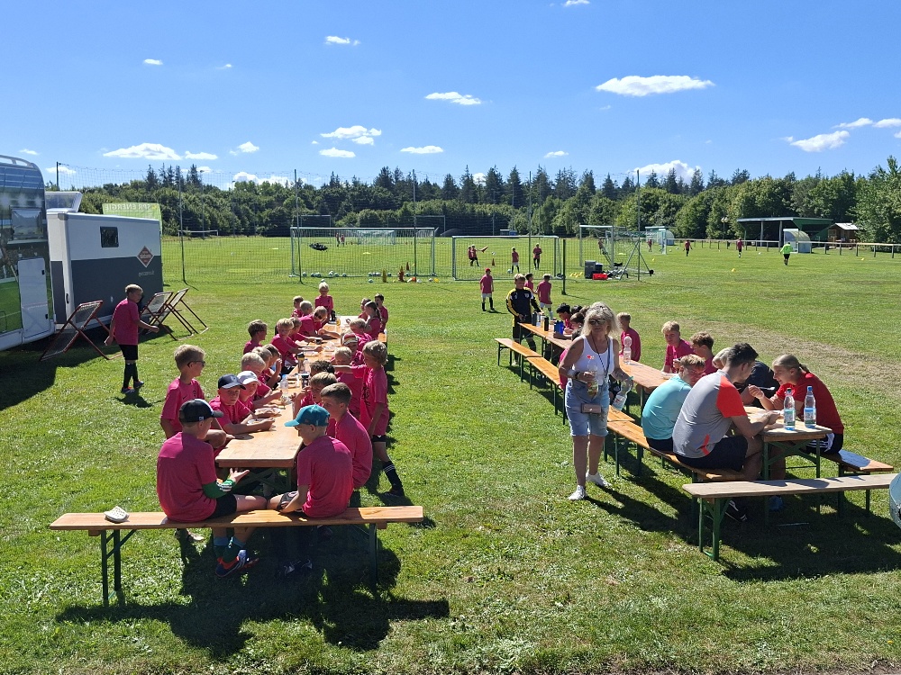 Die 9. Auflage der FFS-Ferienfußballschule kann erneut als großer Erfolg verbucht werden! Mit insgesamt 74 Teilnehmern, davon waren etwa die Hälfte eigene TSV Mitglieder, besteht unverändert ein sehr großes Interesse an dem Fußballcamp. Die Bedingungen hätten in diesem Jahr nicht besser sein können. Wir hatten an allen drei Tagen optimales Wetter mit viel Sonnen-schein, ein wieder sehr motiviertes Trainerteam der FFS, viele fleißige Hän-de, die uns hervorragend bei der Durchführung des Fußballcamps unter-stützt haben und natürlich großartige Jungs und Mädchen zwischen 6 und 15 Jahren. Neben vielen Wettbewerben, die an allen drei Tagen durchgeführt wurden, waren die täglichen Turniere unter Stadionatmosphäre sicherlich eines der Highlights für die Teilnehmenden. Für die Torhüter gab es an allen Tagen ein spezielles Torwarttraining. Ein ganz besonderer Dank gilt unseren Sponsoren, die uns finanziell und mit Sachspenden wieder großartig bei dieser Veranstaltung unterstützt haben. Wir bedanken uns bei: WGF Bau GmbH, SPR Energie GmbH, Zimmerei Dennis Schmidt, Malerbetrieb Christian Petersen, Martin Winkelmann R+V Versicherung, VR Bank Nord eG, Süderlügumer Zentralmarkt, Jugendfeuerwehr Süderlügum, Round Table 88 Südtondern und dem Fußballförderkreis, der die Verpflegungskostenpauschale für unsere TSV Mitglieder übernommen hat!!!